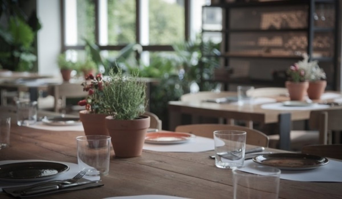 El jardín interior está lleno de árboles y plantas donde poder degustar un menú ejecutivo de lunes a viernes.