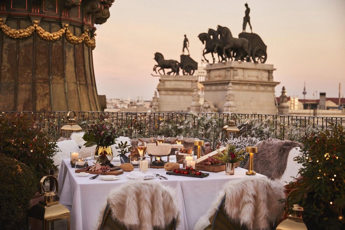 En la séptima planta, Dani Brasserie --la propuesta de Dani García-- vuelve a ser el lugar donde la Navidad se celebra a gran altura. La terraza de invierno se transforma en un refugio après-ski con champán Ruinart, fondue y vistas únicas de la ciudad.