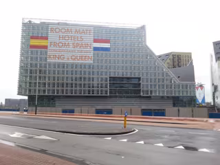 En concreto, en la fachada del hotel, ubicado en la nueva isla artificial construida en la ciudad, se ha colgado un cartel que con el mensaje 'Room Mate Hotels from Spain congratulates the new King and Queen', que pretende felicitar personalmente a los nuevos Reyes de Holanda.