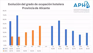 La ocupación turística en la provincia de Alicante sube en mayo hasta el 45,2%, 36,5 puntos menos que en 2019 - APHA