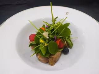 El menú comienza con trucha de río al humo con romero y champiñón natural laminado aderezado con escamas de sal y tomillo. A continuación, se servirán berros con codorniz cocinada macerada con hierbas y acompañada con frutos rojos. Como plato principal llegará a la mesa