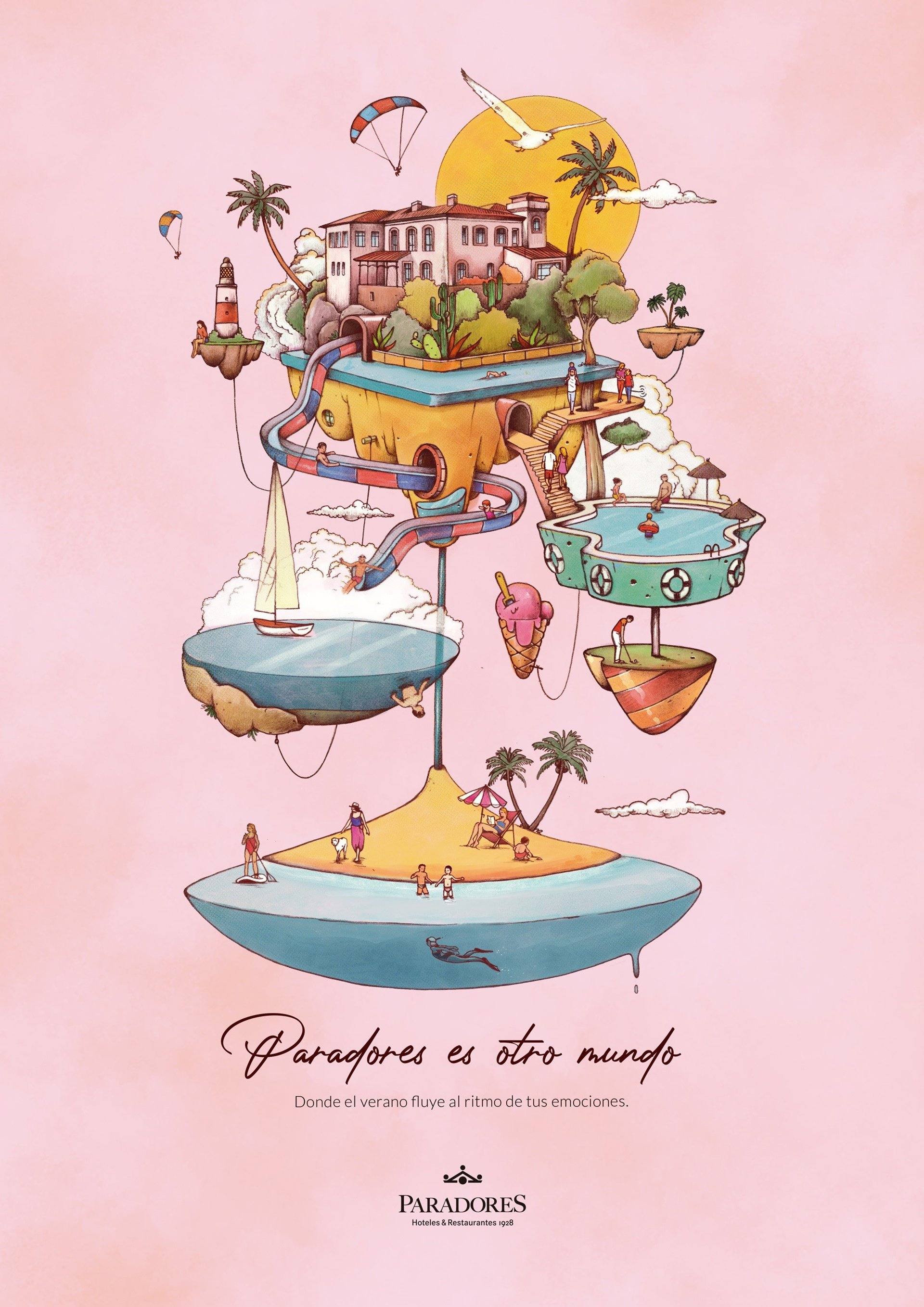La nueva campaña estival, bajo el lema 'Paradores es otro mundo. Donde el verano fluye al ritmo de tus emociones', vuelve a contar con la colaboración del artista madrileño Óscar Llorens.
