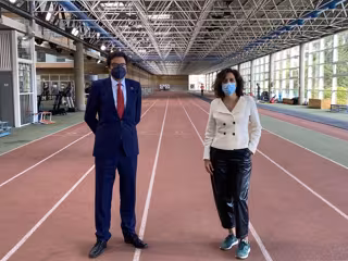 La presidenta del CSD, Irene Lozano, y el presidente de Paradores, Óscar López, en el CAR de Madrid. - CSD