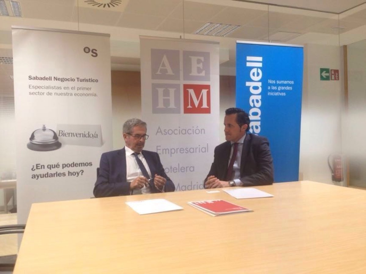 La patronal de hoteles de Madrid (AEHM) ha suscrito un acuerdo de colaboración con el Banco Sabadell a través del cual sus casi 300 asociados tendrán a disposición las líneas de financiación subvencionada que salgan al mercado y una amplia gama de productos y servicios financieros para financiar tanto gastos ordinarios como inversiones en ventajosas condiciones.