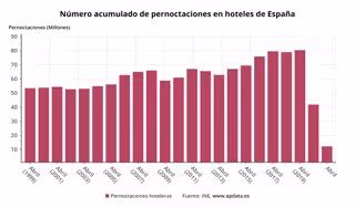 Número acumulado de pernoctaciones en hoteles en España (INE) - EPDATA