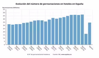 Evolución de las pernoctaciones hoteleras en España (INE) - EPDATA