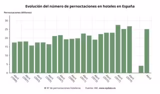 Evolución de las pernoctaciones hoteleras en España (INE) - EPDATA