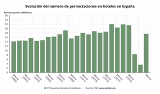 Evolución del número de pernoctaciones en hoteles en España en marzo - EPDATA