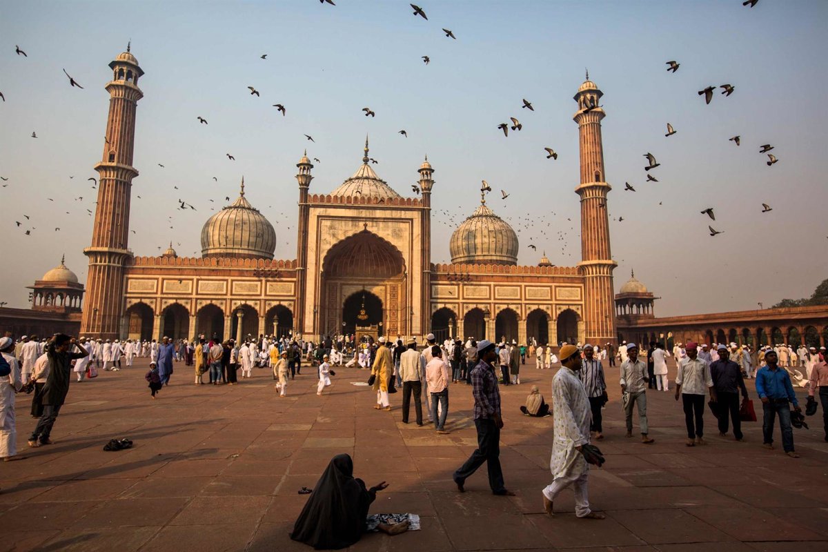 Archivo - DELHI, INDIA - OCTOBER 27: A woman begs for alms as Indian Muslims mingle after - DANIEL BEREHULAK - Archivo