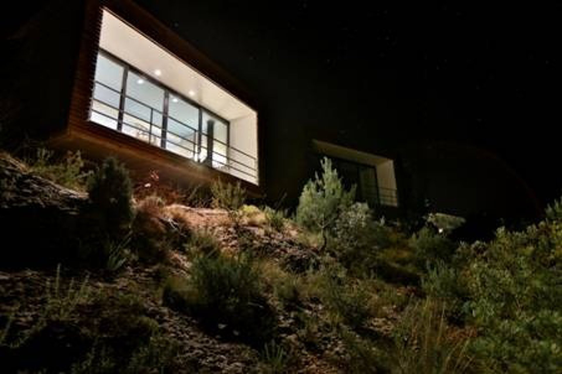Se trata de un espacio individual de 36 metros cuadrados, situado en plena montaña, con una de sus paredes convertida en ventana, una chimenea colgante y una bañera de pizarra negra excavada en el suelo.