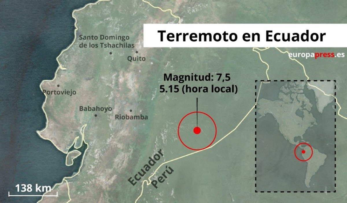 El seísmo más potente ha tenido lugar poco después de las 5.15 (hora local) a 122 kilómetros de la localidad de Macas, capital de la provincia de Morona Santiago, fronteriza con Perú. Según el Servicio Nacional de Gestión de Riesgos y Emergencias, se ha notado "de manera fuerte" no solo en Morona Santiago, sino también en Azuay, Cañar, Guayas, Manabí, Loja, El Oro, Santa Elena, Bolívar y Zamora Chinchipe.