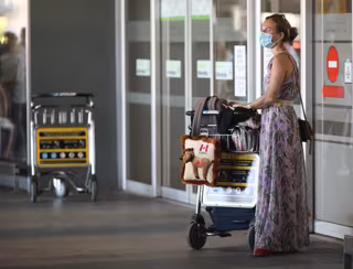 Una mujer protegida con mascarilla llega con su equipaje a la Terminal T1 del Aeropuerto Adolfo Suárez Madrid-Barajas el día de su apertura y de las fronteras de España, en Madrid (España), a 1 de julio de 2020. - Eduardo Parra - Europa Press