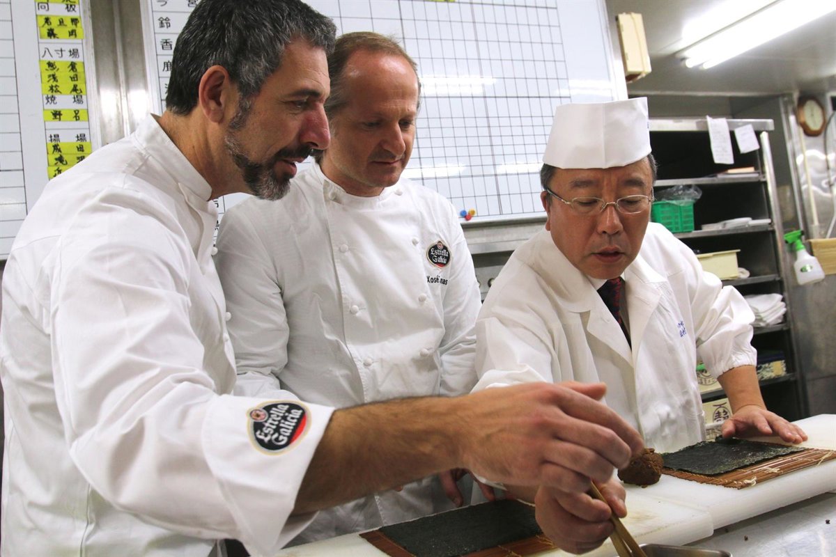 Para ello, ambos han trabajado durante toda la semana codo con codo con cocineros japoneses con el objetivo de trasladar a los clientes la esencia de la cocina gallega.