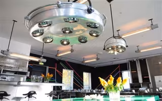 La ubicación de 'Lab111' tampoco resulta nada convencional: un antiguo laboratorio de anatomía patológica reconvertido en centro cultural. El elemento más significativo de su pasado como morgue es la gran lámpara de la mesa de autopsias, que hoy preside la sala principal del restaurante. La fachada del edificio sigue siendo también la original.