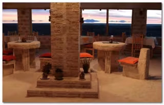 El Hotel 'Luna Salada' en Bolivia puede considerarse como uno de los más originales del mundo ya que está construido enteramente con bloques de sal, desde el techo al suelo, hasta el mobiliario, todo está hecho con bloques del salar cercano, según informa en su página web el establecimiento hotelero.