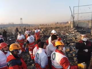 Personal de la Media Luna Roja iraní en el lugar del siniestro del avión Boeing 737 de Ukraine International Airlines - MEDIA LUNA ROJA DE IRÁN