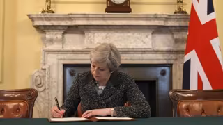 La 'premier' ha permitido a la prensa británica fotografiar el momento en el que ha estampado su rúbrica en el documento, en la sede del Gobierno, en el número 10 de Downing Street, pero no ha dado declaraciones.
