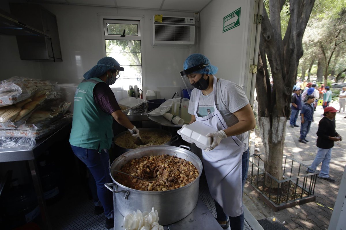 Voluntarios preparan comida para los familiares de pacientes ingresados por la COVID-19 en el Hospital General de Ciudad de México. - Paola Hidalgo/NOTIMEX/dpa