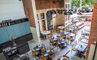 Se ha restaurado el techo de cristal original y recuperado el suelo de cemento y el ladrillo escondido bajo capas de cemento. También se pueden ver los viejos raíles en el suelo del restaurante.