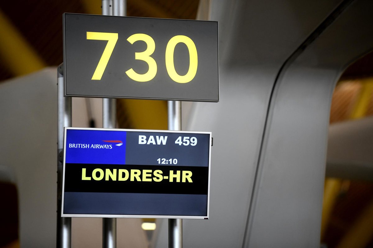 Panel indicativo de un vuelvo con destino Londres en la terminal T4 del Aeropuerto de Madrid-Barajas Adolfo Suárez, en Madrid (España), a 27 de julio de 2020. - Óscar Cañas - Europa Press - Archivo