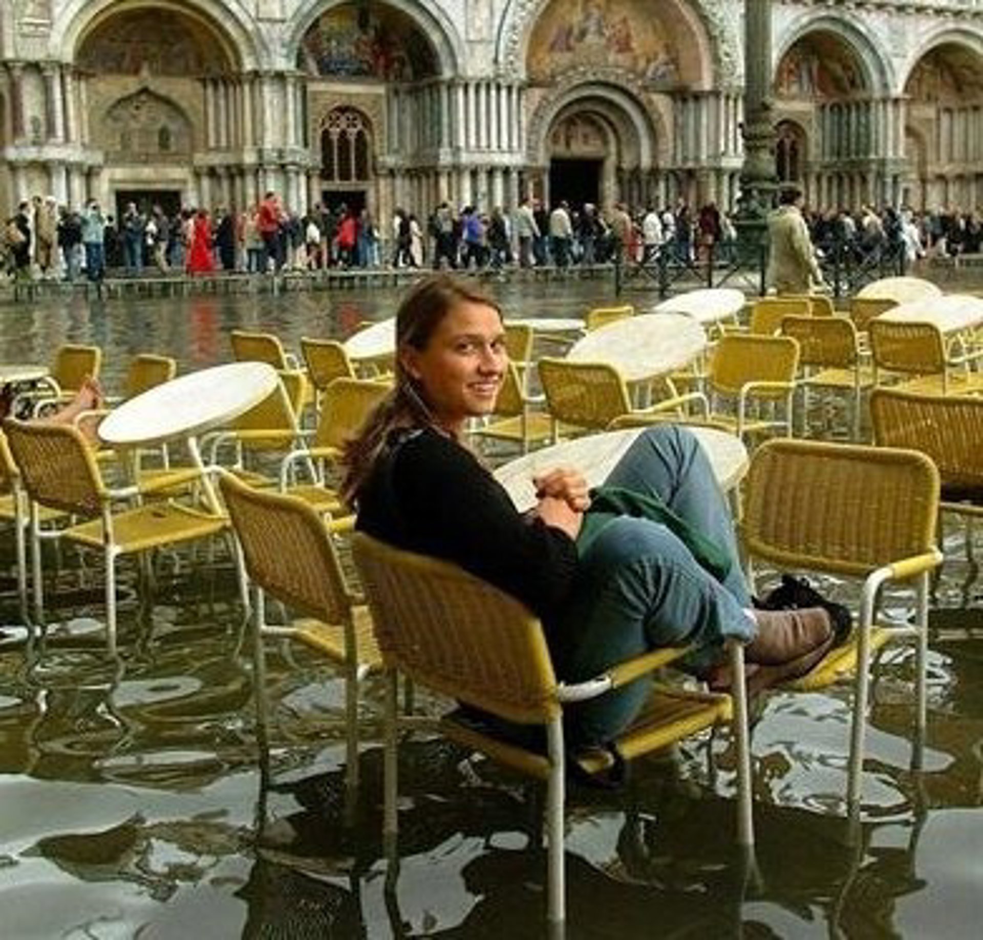 Algunos turistas se han puesto sus trajes de baño y se han sentado en las mesas de café de la plaza de San Marcos bajo el agua para disfrutar de un fenómeno recurrente en esta ciudad, sobre todo en otoño y en invierno.