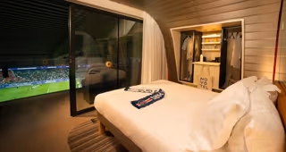 Ubicada en el interior del estadio, la suite está diseñada con el concepto "Hypothesis" de Novotel, que garantiza que "cada aspecto de la habitación desprenda elegancia y confort", contando con una cama de matrimonio, un cuarto de baño privado, un minibar y un televisor de pantalla panorámica. También se puede añadir una cama individual para acomodar a un huésped más joven.