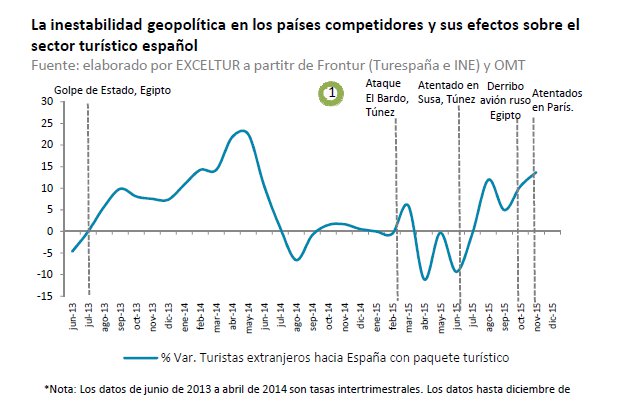 El gradual crecimiento de la economía española en 2015 ha supuesto una recuperación del consumo y gasto turístico de los españoles. Así los indicadores de demanda turística interna de los españoles cierran el conjunto del año con crecimientos superiores al 5%. A esto se suma una reiterada y creciente inestabilidad geopolítica en los principales países competidores de 'sol y playa'.