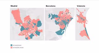 A Madrid llegaron más de 600.000 huéspedes en zonas con Airbnb y sin hoteles, lo que supuso unos ingresos de más de 90 millones para los anfitriones locales; a Barcelona llegaron más de 450.000, lo que supuso más de 95 millones; y a Valencia casi 300.000, superando los 43 millones.