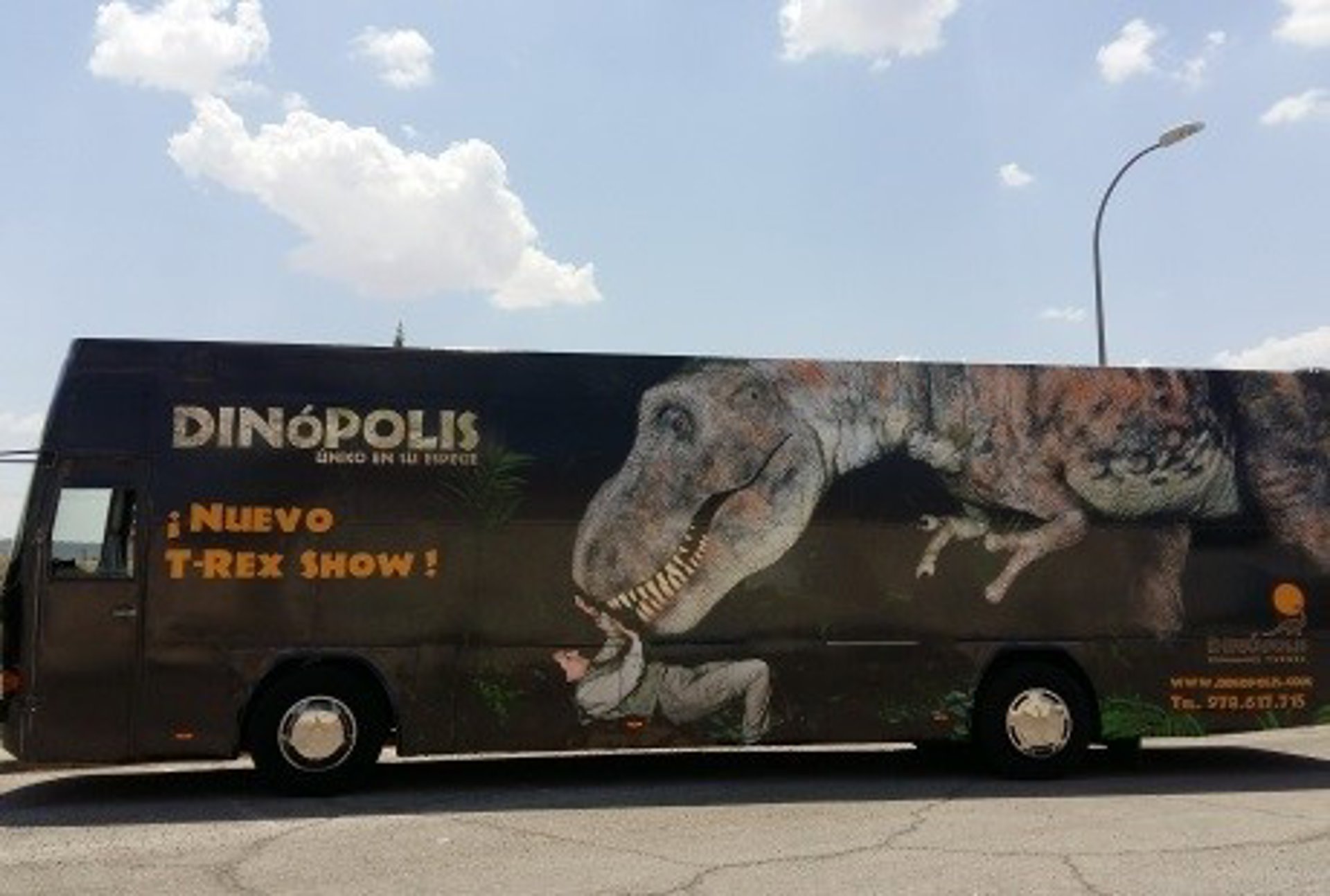 Este autobús tematizado busca captar la atención de los habitantes y turistas. Para ello, los laterales y delantera del vehículo tienen como protagonista el nuevo 'T-Rex Show', espectáculo que este parque estrenó al comienzo de su temporada.