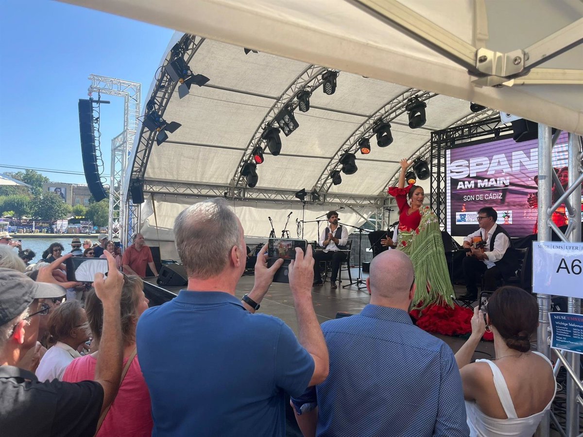 En esta ocasión, se ha llevado hasta Francfort la actuación del grupo flamenco 'Son de Cádiz', integrado por una bailaora, un guitarrista, un cantaor y un percusionista. Dicho grupo, contratado por el Patronato para esta acción promocional, ha ofrecido varios pases de su espectáculo a lo largo del fin de semana del Museumsuferfest.