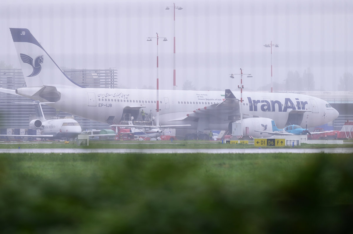 09 October 2023, Hamburg: An Iran Air aircraft stands at Hamburg Airport. Due to a threat of an attack on an Iranian aircraft from Tehran, flight operations at Hamburg Airport have been completely suspended. Photo: Jonas Walzberg/dpa - Jonas Walzberg/dpa