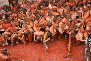 Durante años se celebró esta 'batalla' y, aunque la 'Tomatina' fue prohibida entre 1950 a 1957, la demanda de los vecinos obligó a reinstaurarla de forma oficial, destacan los 'populares'.