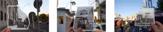 Para lograr su objetivo, León compró postales antiguas en un mercadillo y las rompió en trozos para crear una composición en la que hizo coincidir esos pedazos con el lugar actual.
