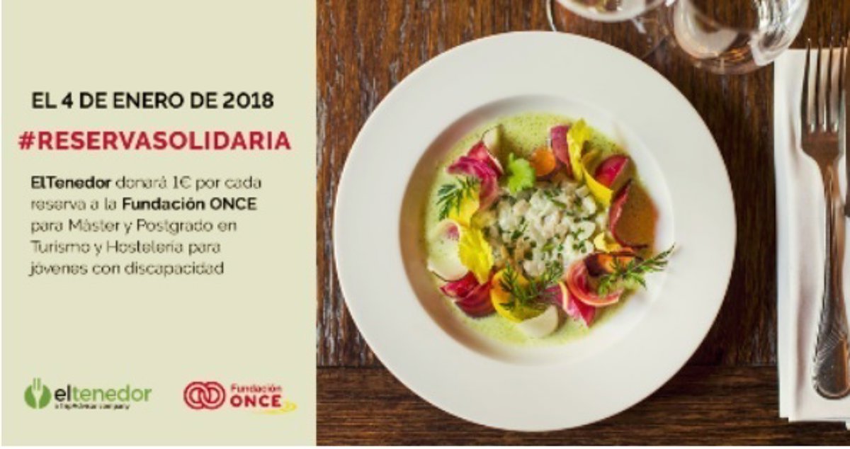 Así, 'ElTenedor' donará un euro al programa por cada una de las reservas que se hagan para este jueves, 4 de enero de 2018, y se disfruten ese mismo día. La cantidad recaudada será donada para que jóvenes universitarios con discapacidad pueda llevar a cabo estudios de máster o postgrado en turismo, según detallan sus impulsores.