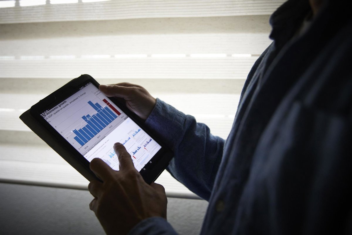 Archivo - Un hombre sujeta una tablet con un gráfico, a 4 de enero de 2022, en Madrid, (España). - Jesús Hellín - Europa Press - Archivo