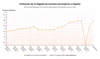 Evolución de la llegada de turistas extranjeros a España - EPDATA