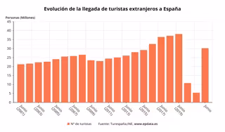 Con este nuevo repunte de junio, tanto la llegada de turistas internacionales como el gasto que realizan en España acumulan ya doce meses consecutivos de alzas interanuales tras el parón por el coronavirus.