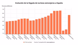 Evolución de la llegada de turistas a España durante el mes de septiembre. - EPDATA