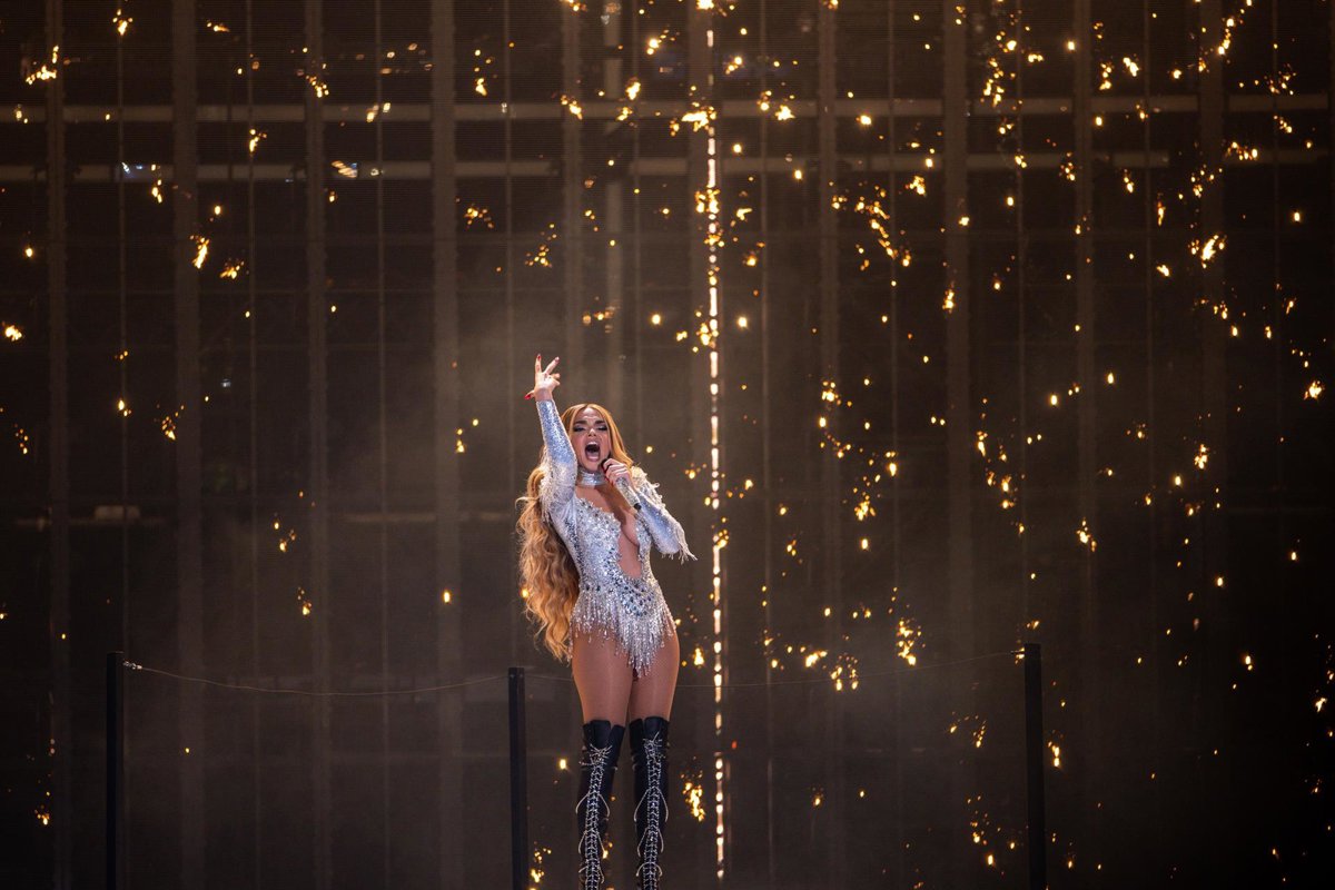 13 May 2025, Switzerland, Basel: Melody from Spain performs with the song "Esa Diva" at the first semi-final of the 69th Eurovision Song Contest in the Arena St. Jakobshalle. Photo: Jens Büttner/dpa - Jens Büttner/dpa