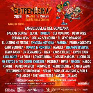 El festival Extremúsika, que volverá al recinto ferial de Cáceres en primavera, ya ha confirmado más de 40 grupos con los extremeños Sanguijuelas del Guadiana como cabeza de cartel. El certamen se celebrará del jueves 30 de abril al sábado 2 de mayo, coincidiendo con el puente festivo del 1 de mayo, por lo que en 2026 cambia de fecha y se adelanta varios meses desde su última edición en octubre de 2025.