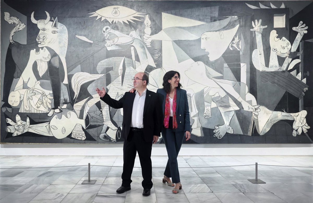 El ministro de Cultura y Deporte, Miquel Iceta y la ministra de Cultura de Francia, Rima Abdul Malak, durante la presentación de los actos conmemorativos del Año Picasso, en el Museo Reina Sofía, a 12 de septiembre de 2022, en Madrid (España). - Eduardo Parra - Europa Press