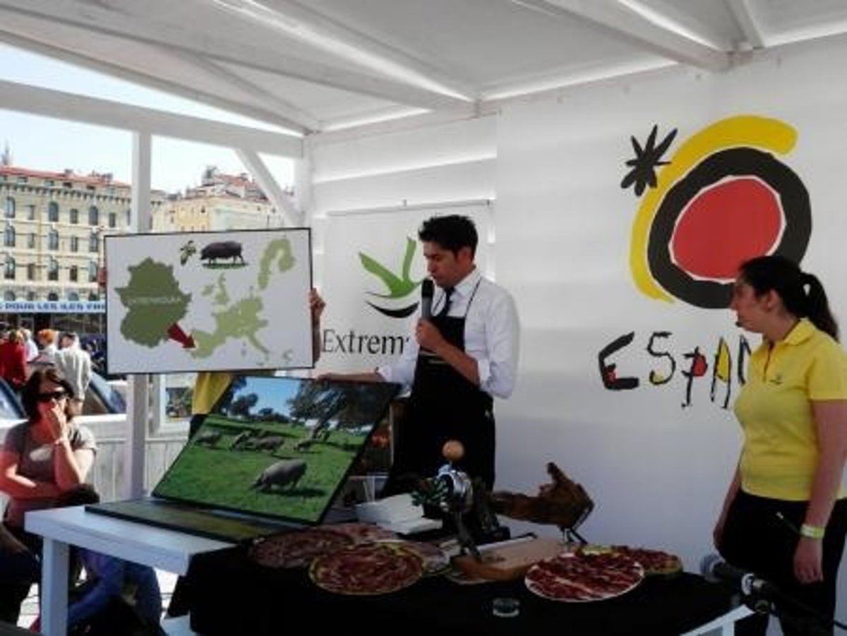 Así, a través de varias clases magistrales sobre el jamón, impartidas por el maestro cortador Antonio Cortés, extremeño afincado en París, el público ha podido descubrir Extremadura, su paisaje, su gastronomía y el arte de "saber hacer y tratar" este producto.