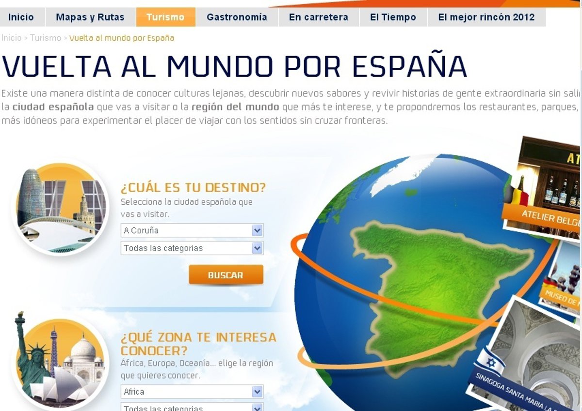 'Vuelta al Mundo por España', así se denomina el espacio diseñado por la Guiarepsol.com, que permite al viajero acercarse a culturas exóticas, descubrir nuevos sabores y visitar lugares insólitos sin tener que cruzar nuestras fronteras.