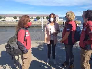 La conselleira de Medio Ambiente, Territorio e Vivenda, Ángeles Vázquez, en el puerto de Vigo, con trabajadores del Parque Nacional Illas Atlánticas. - EUROPA PRESS