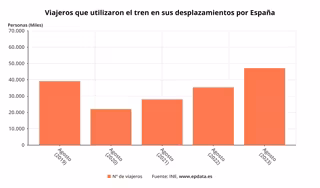 Por su parte, el transporte urbano por autobús aumentó un 26,9% en agosto respecto al mismo mes de 2022. Todas las comunidades autónomas presentaron tasas anuales positivas en este tipo de transporte.