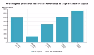 La larga distancia también sigue su escalada, así aumentó un 8,9% en el transporte por autobús y un 24,3% en el ferrocarril. Dentro de este último, la Alta Velocidad crece un 34,3% hasta rozar los 3 millones de pasajeros.