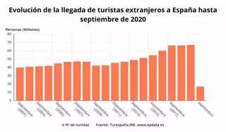 Número acumulado de turistas extranjeros que llegaron a España hasta septiembre de 2020 - EPDATA