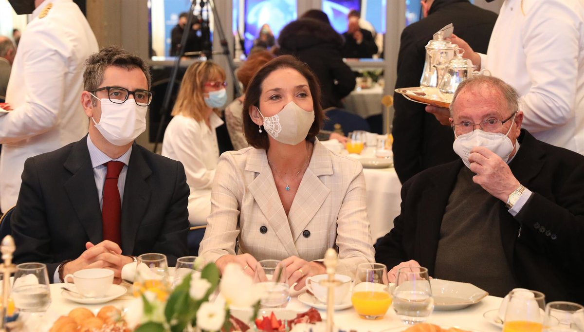 El ministro de la Presidencia, Relaciones con las Cortes y Memoria Democrática, Félix Bolaños (i), y la ministra de Industria, Comercio y Turismo, Reyes Maroto, en un desayuno organizado por Nueva Economía Fórum, en el Hotel Mandarin Oriental Ritz, a 17 - Marta Fernández Jara - Europa Press
