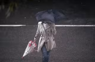 Una persona camina bajo la lluvia protegida con un paraguas, en Madrid (España) a 24 de septiembre de 2020. La ciudad ha registrado un chubasco intenso este jueves entre las 08.30 y las 10.00 horas en el que se han acumulado entre 17 y 19 litros por met - Óscar Cañas - Europa Press