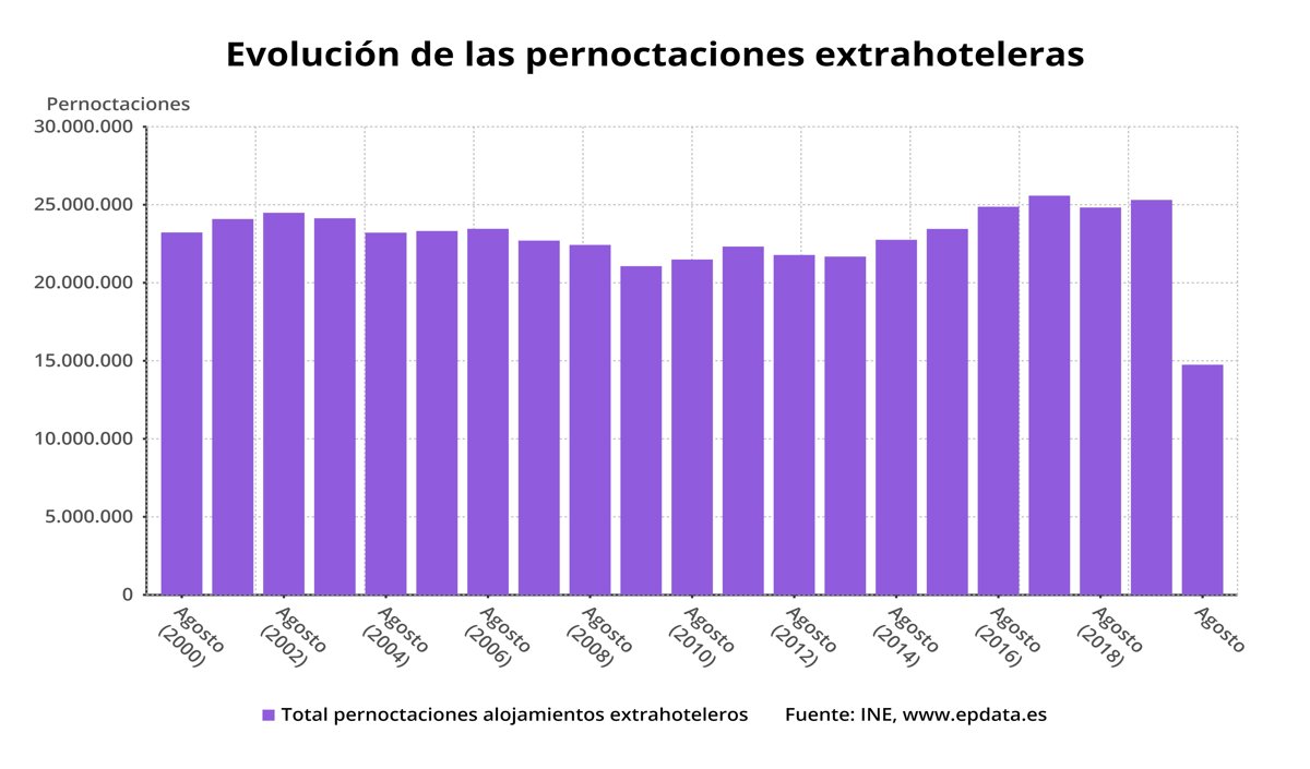 Evolución de las pernoctaciones extrahoteleras hasta agosto de 2020 - EPDATA